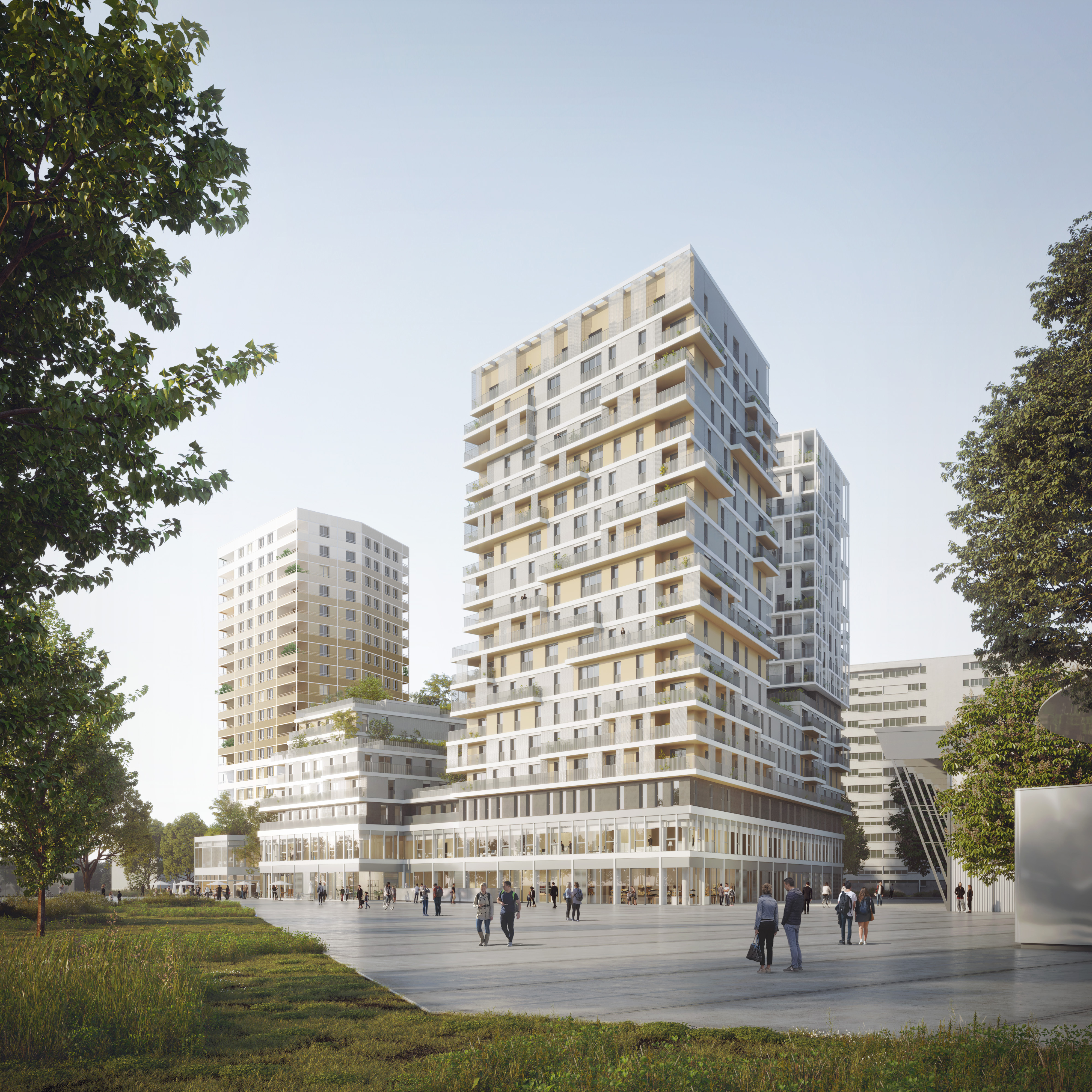 Cet ensemble de 28 000 m², conçu par l’agence Ameller, Dubois et Associés et l’agence Mootz Pelé, abrite des programmes de logements mais également des espaces de commerces de proximité, de service (un pôle médical notamment) et des bureaux.